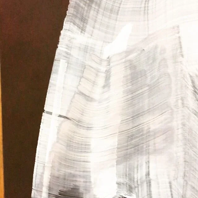 For Nocera, the presence of black, the presence of white, and the interaction of the two presences comprise a symbolic harmony, a balancing of two contrasting – but mutually reliant – principles. The symbolism reaches as far as his personal life: indeed, it originates there. The Sequoia series is named after the artist’s daughter, born of an African-American mother and a European-American father. The alignment of the basic elements in each Sequoia painting according to color is clear, and in personalizing that alignment Nocera also symbolically extends the resulting harmony beyond his home and into society, American society most of all. But the binary condition of the Sequoia works also speaks to gender principles, the openness and evenness of the ground, the yin to the yang of the active, gestural figure. Nocera locates himself – procedurally as well as symbolically – in that dynamic white figure while honoring the more-or-less unmodulated black field as the grounding force. Neither element is an alien “other,” and the whole that results from their interplay is greater than either of them.